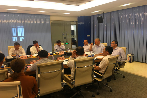 理事会前,上海电器科学研究所(集团)有限公司副总裁、上海电器设备检测所所长王爱国( 右一)