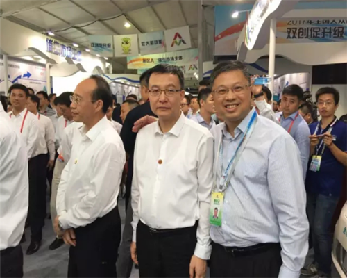 “双创周”启动仪式后,中共中央政治局常委、国务院副总理张高丽,中共中央政治局委员、上海市委书记韩正,全国政协副主席、科技部部长万钢,国家发展和改革委员会主任何立峰,上海市委副书记、市长应勇,上海市委常委、常务副市长周波等领导与行业代表共同巡视了展区,在福赛特展台,饶有兴趣地听取企业负责人介绍。