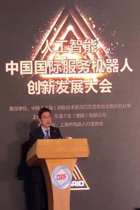 首届人工智能--中国服务机器人创新发展大会于4月19日下午,在第六届中国(上海)国际技术进出口交易会(以下简称“上交会”)期间的世博展览馆会议室召开。大会与上交会人工智能和服务机器人7500平方业米展区互动,吸引了300多位中外听众。十多位来自政府、企业、高校的专家和企业家作了热情洋溢的精彩演讲。上交会的发起和倡导者,原商务部部长、海峡两岸协会会长陈德铭亲临论坛致辞,东浩兰生集团池洪总裁代表主办方致欢迎辞。会议分主旨演讲和圆桌会议两部分,持续到下午六点超过才结束,嘉宾和听众的互动热情犹如当天的热度骤升的艳阳天,人工智能技术和服务机器人行业火爆但不失理性。