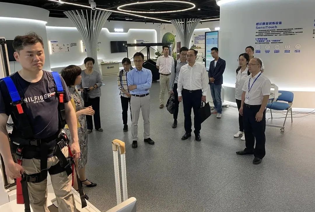 在电气智能康复公司,上海电气集团中央研究院党委书记谢雪琼介绍成立于2018年的电气智能康复公司是电气集团进军高端医疗产业的重要举措,也是在研究院基础上孵化出来、建立能够调动创业团队积极性的创新机制,希望借助外部资本推动创新企业和产品的市场化发展,树立起上海自主品牌;电气智能康复公司总经理禹华军介绍了公司的研发产品的主要技术和应用特点,并表示面临创业压力的企业能得到关注和支持会更加不负众望。