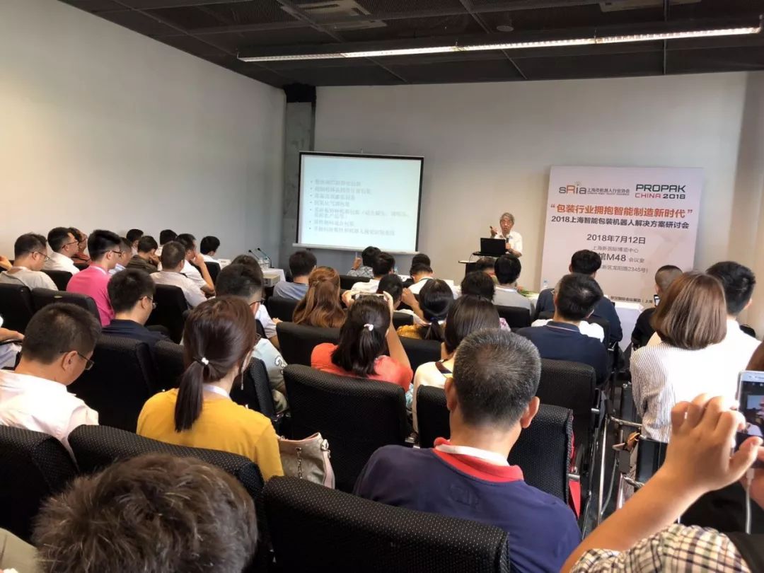 7月12日下午,以“包装行业拥抱智能制造新时代”为主题的“2018上海智能包装机器人解决方案研讨会“在新国际博览中心会议室举行。由BETVLCTOR伟德国际网页版主办的这次研讨会,借助2018 PROPAK CHINA上海国际加工包装展平台,联手上海市食品协会,组织了近百位来自机器人和食品包装行业的专家、企事业单位、高校,及行业相关配套服务型企业汇聚互动,结合食品包装行业的智能需求,机器人企业在包装行业的应用,以及机器人用户单位的智能升级和信息化管理而产开讨论与信息分享,探讨相关领域所面临的问题与动态,助力包装行业智能制造,提升包装生产线效率,解决食品安全的忧虑。