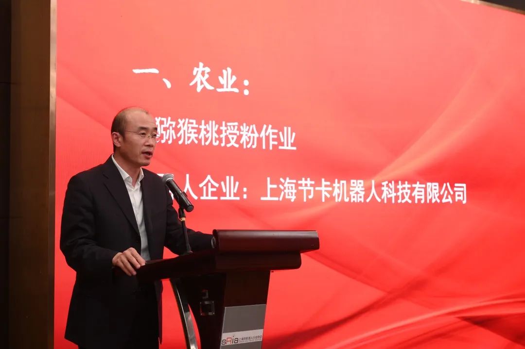 市经信委智能制造推进处处长韩大东宣读上海市入选工业和信息化部办公厅、农业农村部办公厅、国家卫生健康委员会办公厅、国家矿山安全监察局综合司《关于公布农业、建筑、医疗、矿山领域机器人典型应用场景名单的通知》的企业及场景。
