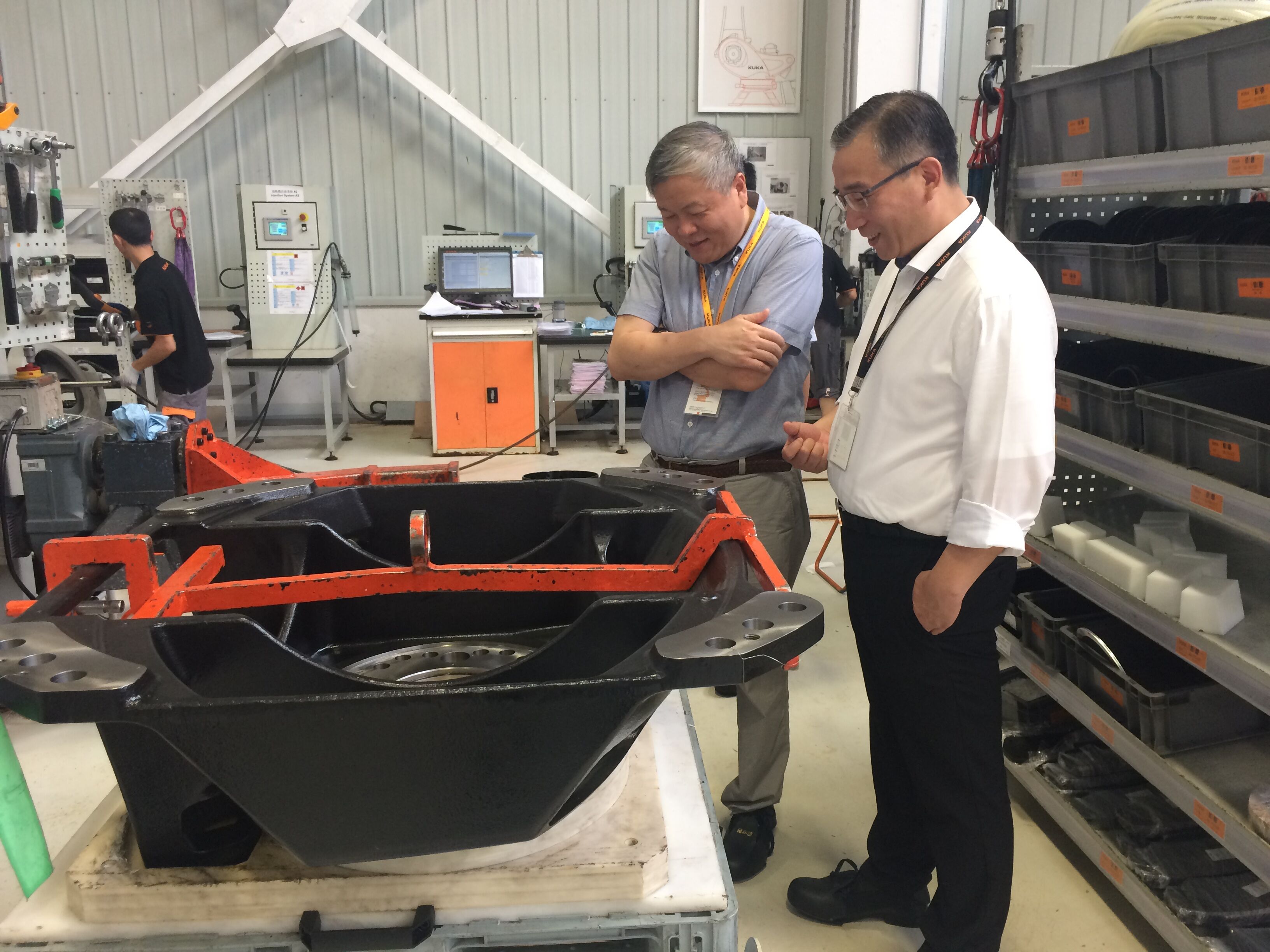 9月25日上午,戴柳会长一行走访副会长单位库卡机器人(上海)有限公司。协会副会长、库卡公司CEO孔兵陪同戴会长一行参观了生产车间、培训中心等,从部件检测、控制柜的安装调试、主机安装、涂装、检测、到包装等全过程,戴会长饶有兴趣地听取孔总详细介绍每个环节的制造工艺和技术水平,对库卡产品的精湛技术以及成批整装待发的产品表示赞叹。