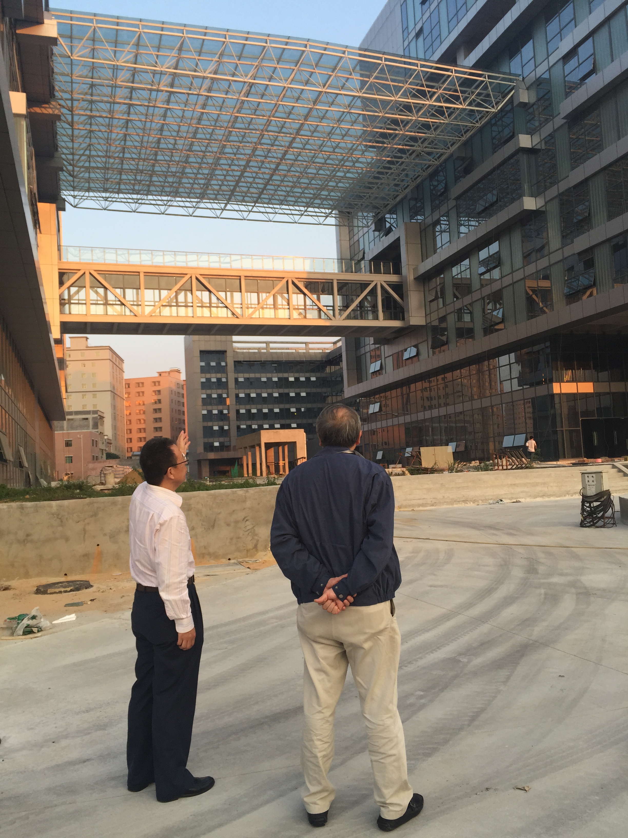东莞固高自动化技术有限公司总经理刘甲琪(左)为戴柳会长介绍即将落成的智能制造大楼