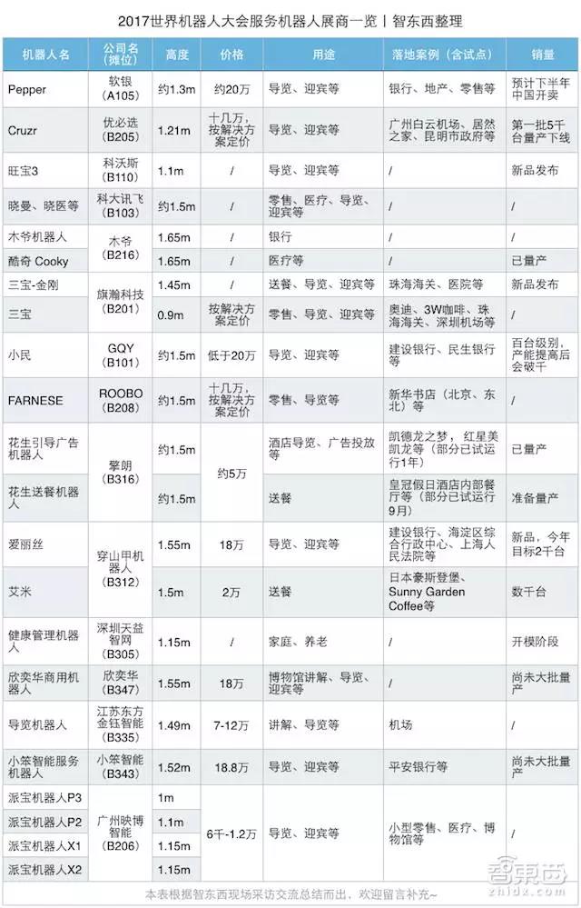 在本次机器人大会博览展上,智东西(公众号: zhidxcom)特别选取了其中的15家提供服务机器人的企业进行重点关注: