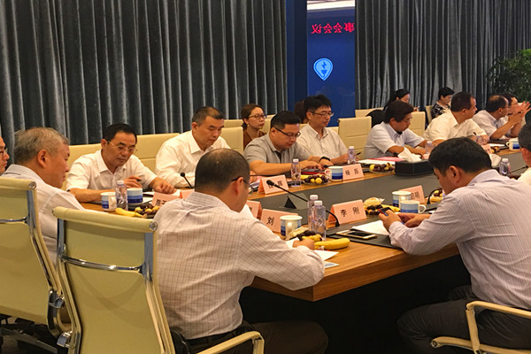理事会前,上海电器科学研究所(集团)有限公司副总裁、上海电器设备检测所所长王爱国( 右一)