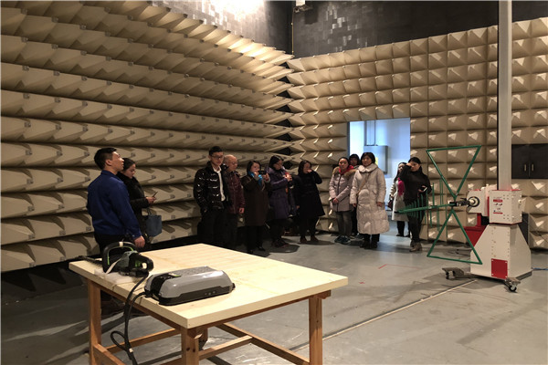 活动分四个部分,首先安排参观了莱茵科技(上海)有限公司机器人检测车间和实验室,投资几千万元的专门检测机器人抗干扰的检测空间给参观者留下深刻印象。德国莱茵TüV成立于1872年,是国际领先的专业第三方检验、检测、认证、咨询机构,全球有两万多名员工,中国就有近两千名工作人员。