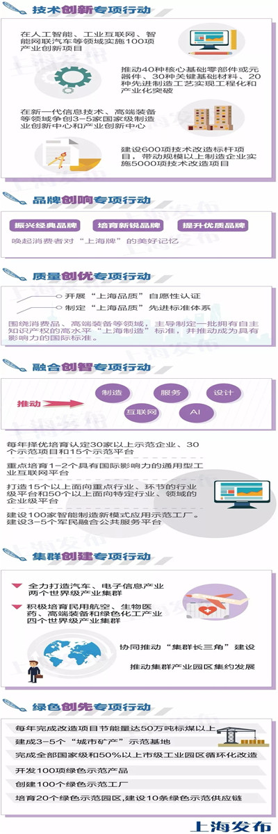 为落实好市委、市政府的总体部署要求,上海将《行动计划》分解成95项具体任务,会同相关委办局、各区、园区、企业等社会各方,按照职责分工,抓紧行动起来。要坚持远近结合、精准发力,协同联动、久久为功,加快构建上海制造战略新优势。