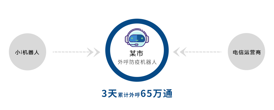 小i机器人凭借自身领先的智能语音识别、自然语言处理和智能交互策略等核心技术,结合当地电信公司提供的固话线路支撑,免费为某市提供了防疫外呼机器人服务,用于对市民进行疫情信息调研筛查工作。防疫外呼机器人上岗后,三天累计外呼量达65万通,为政府做好疫情防控工作提供了强有力的支撑,提高了市民对政务服务的满意度。