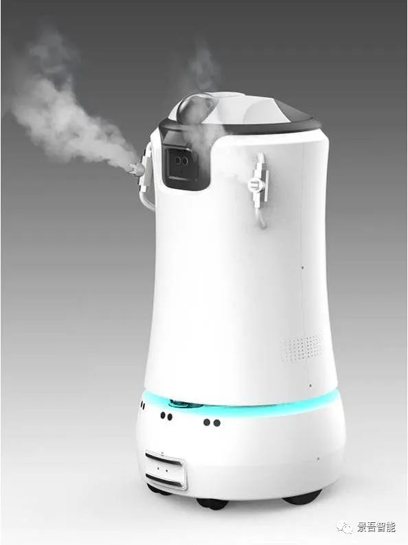 疫情之下有忧虑?加装喷雾装置的景吾机器人,定时消毒,杀菌彻底,为宾客健康护航。