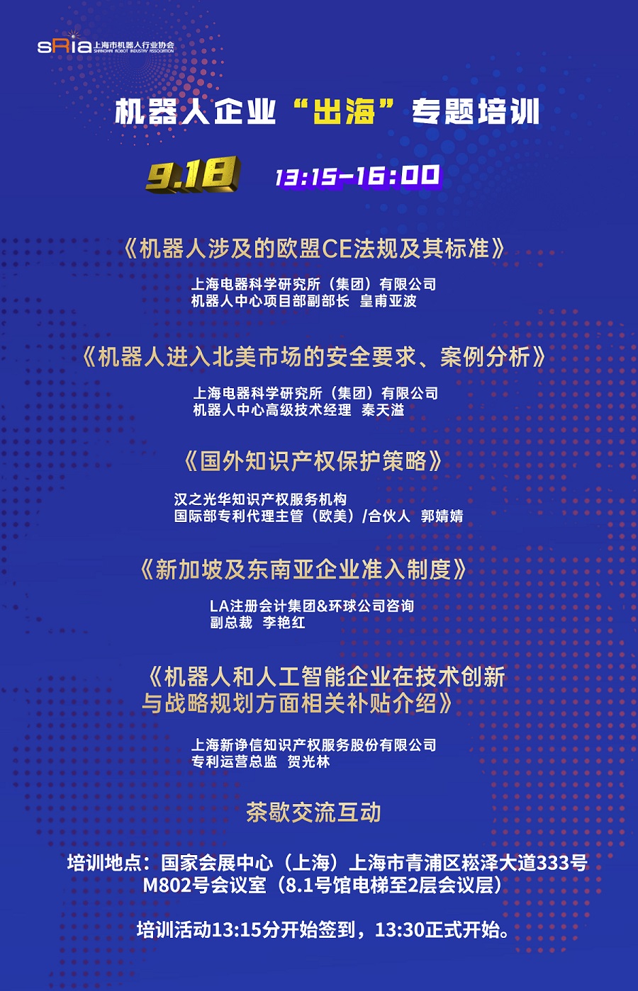 除为机器人企业出海保驾护航外,还有就机器人和人工智能企业在知识产权保护、专利布局等方面的需求,本市相关部委给予的政策补贴等介绍。