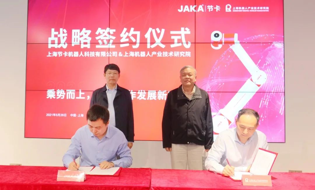 上海电器科学研究所(集团)有限公司副总裁、上海机器人产业技术研究院董事长郑军奇和节卡机器人董事长兼CEO李明洋分别代表双方签约。